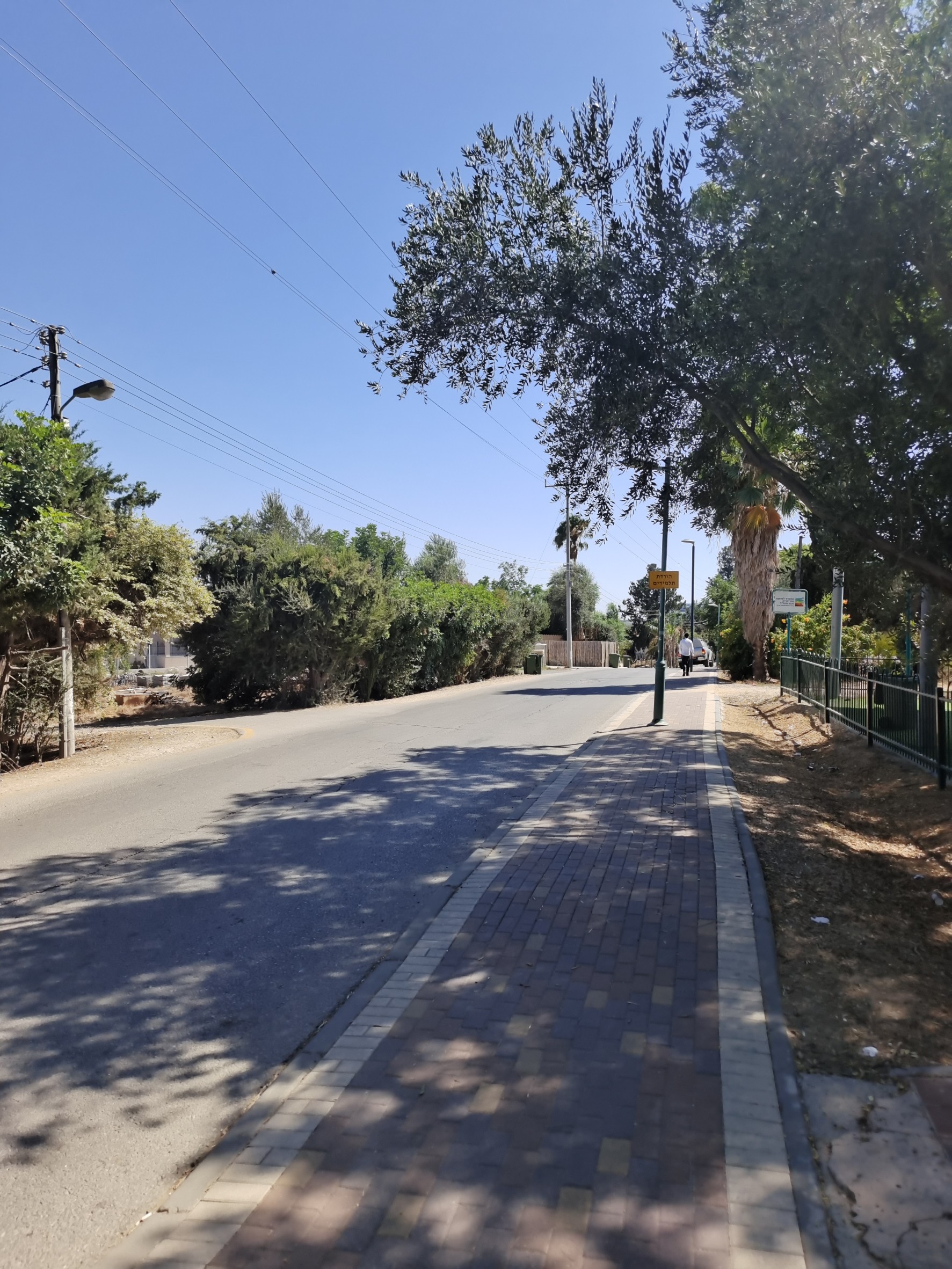 I visited a village where Orthodox Jews live. I sat on a bench and enjoyed the peaceful atmosphere while people went about their day.