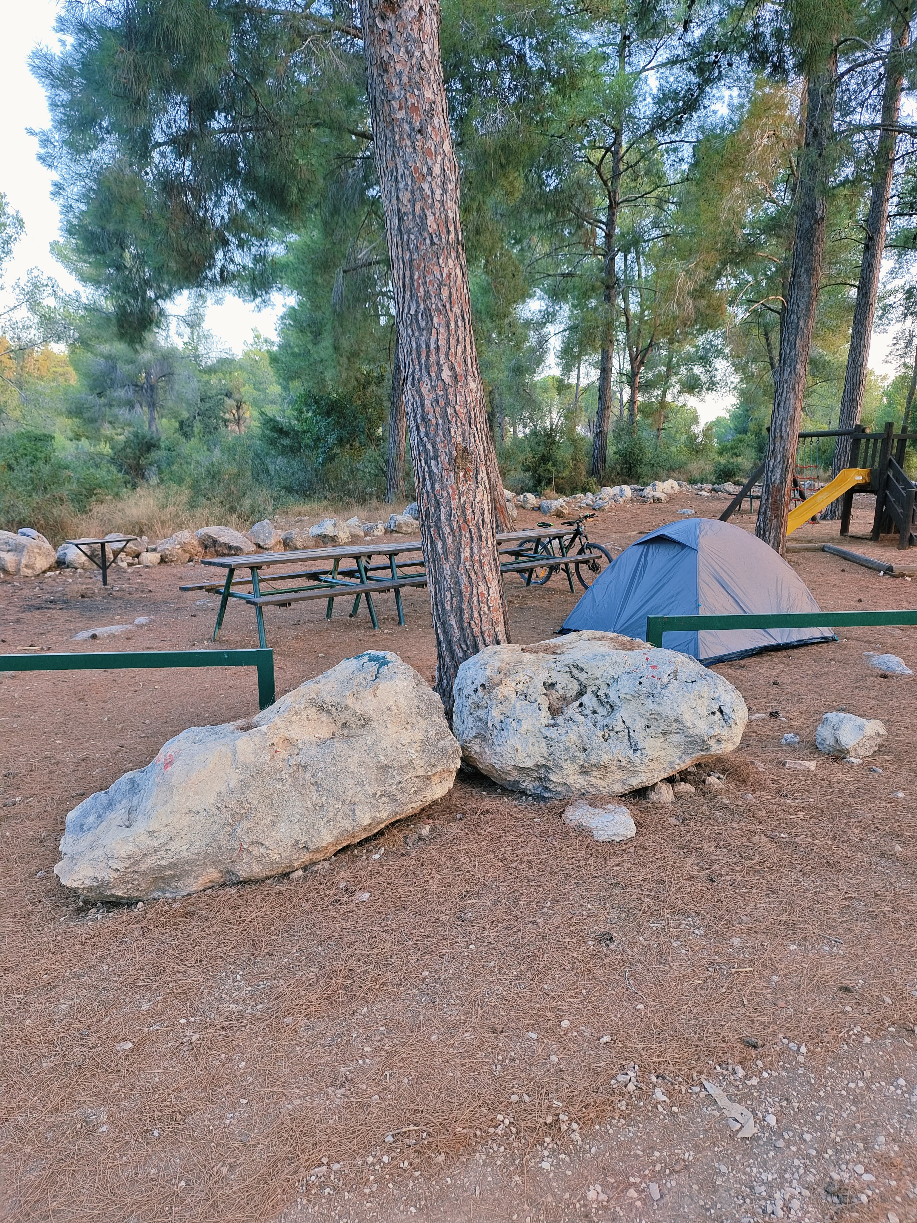 The campground “Hidden Forest” (Google Maps) is a great place for a vacation. It has everything you need: tent spots, picnic tables, BBQs, garbage bins, and even a playground for kids. It’s spacious and located on a hill, so there’s plenty of room for everyone.