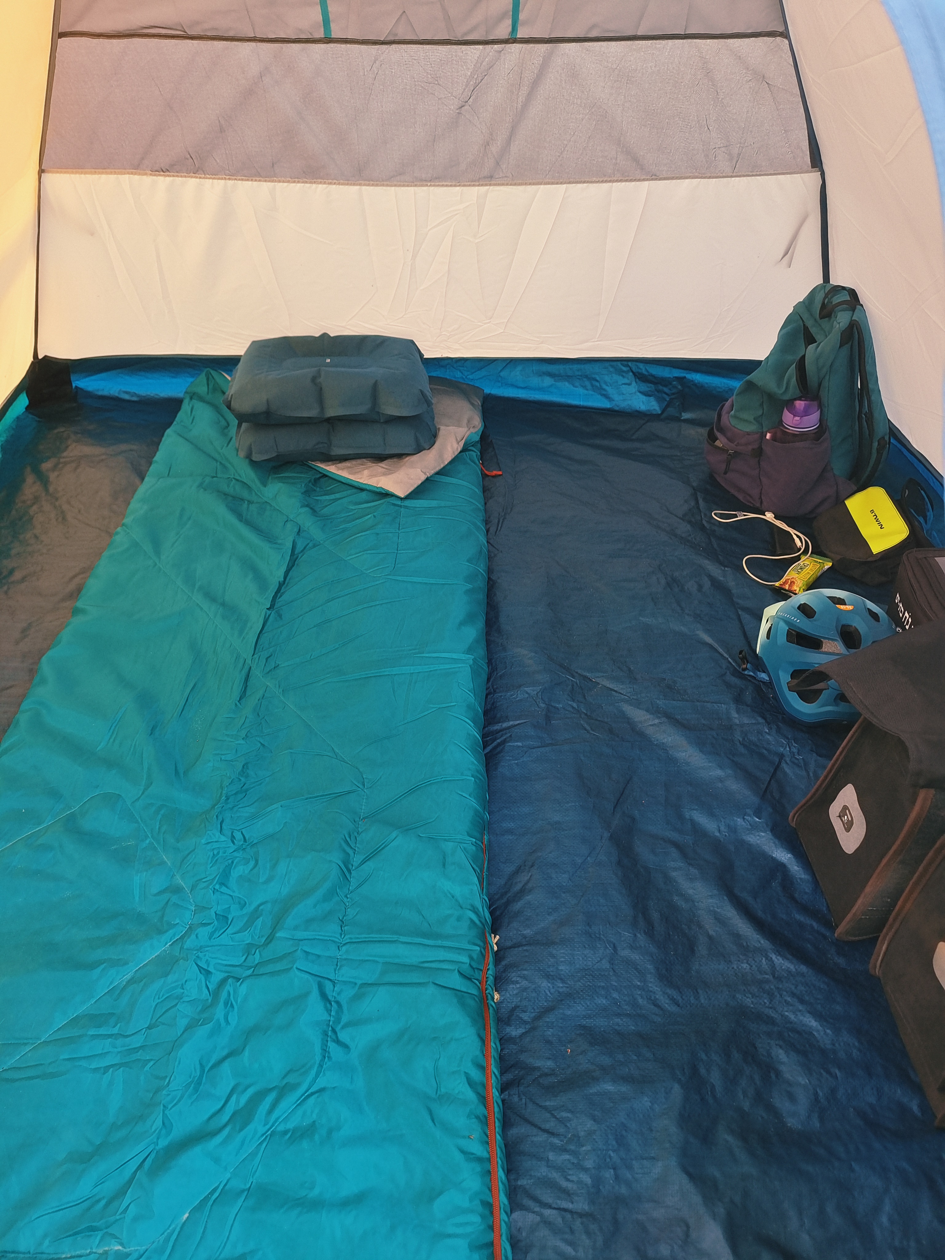 Every journey is preceded by preparation, as you know. In my case, preparation consisted of purchasing the necessary equipment: a luggage rack, bags, a tent, a mattress, a sleeping bag, two pillows, and a helmet.