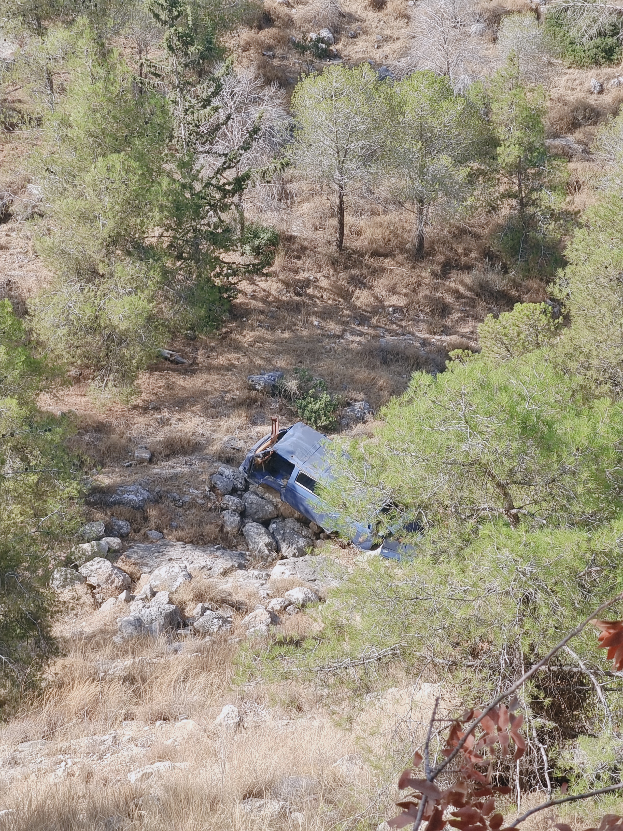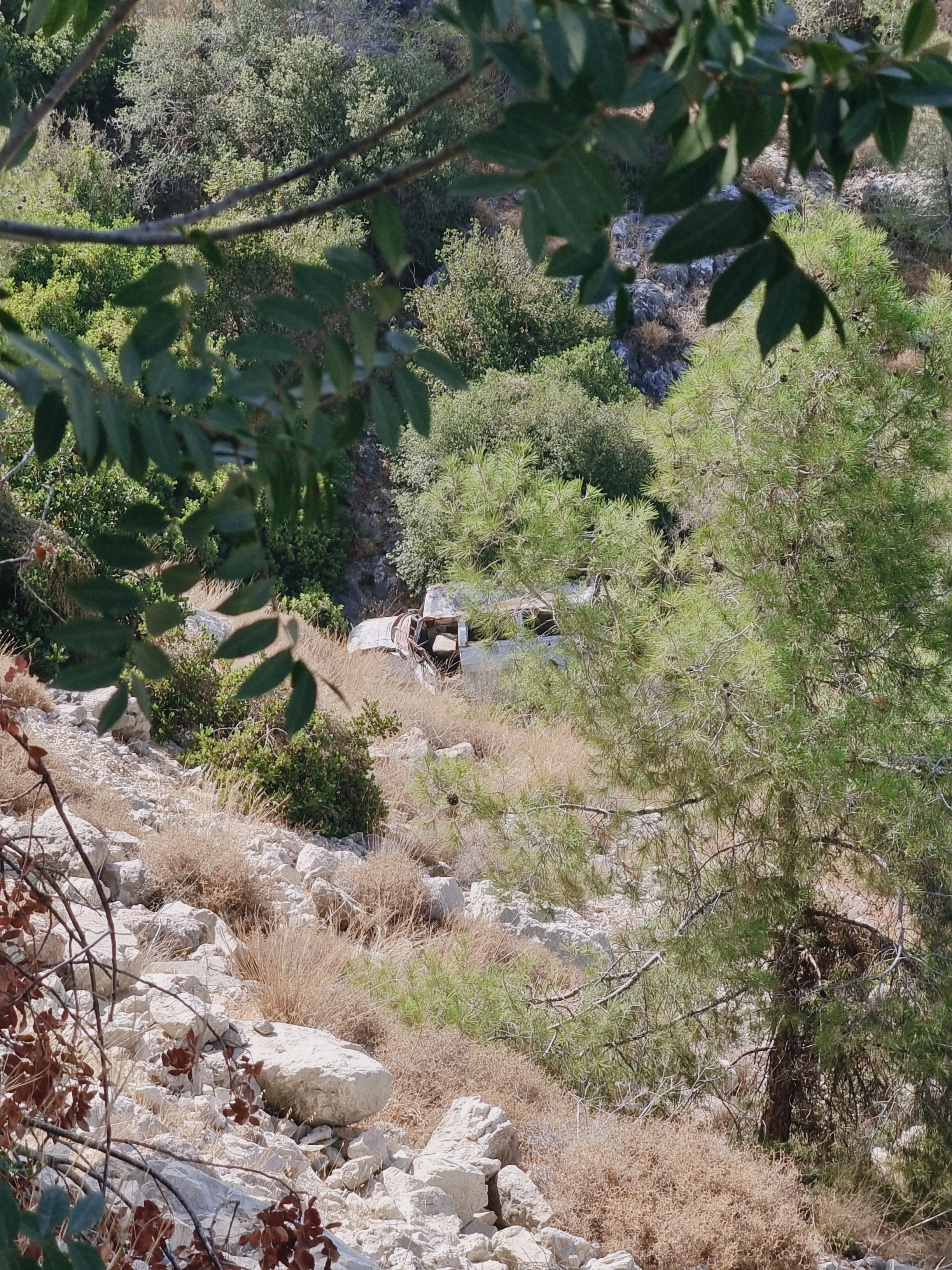Car cemetery at the base of the hill.