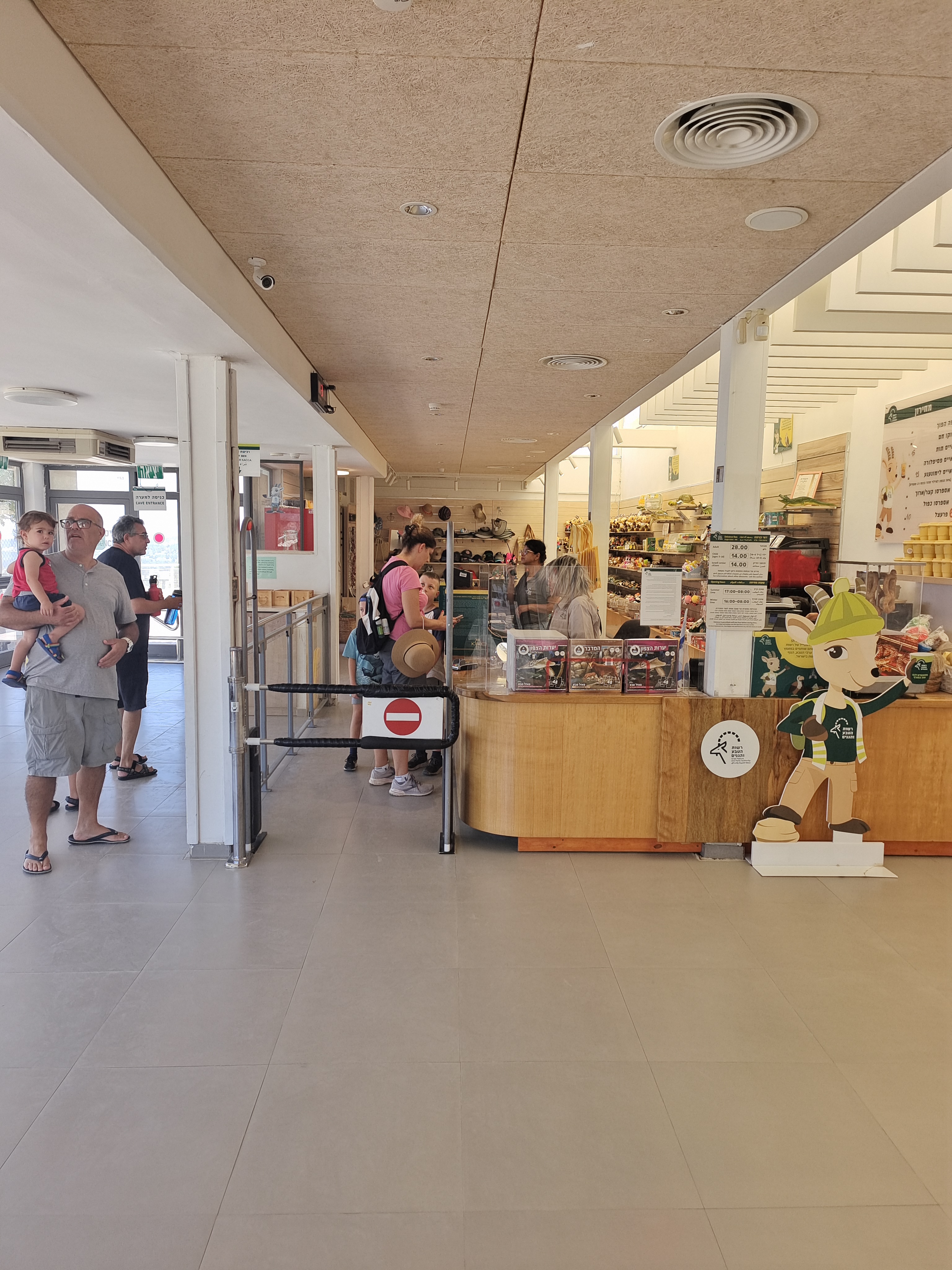You can buy food, souvenirs, and tickets at the shop in the building. The hall is big and has benches and air conditioning, so you’ll be comfortable. Before going into the cave, they show a short film about its history and stalactites. The cave was found while they were mining.